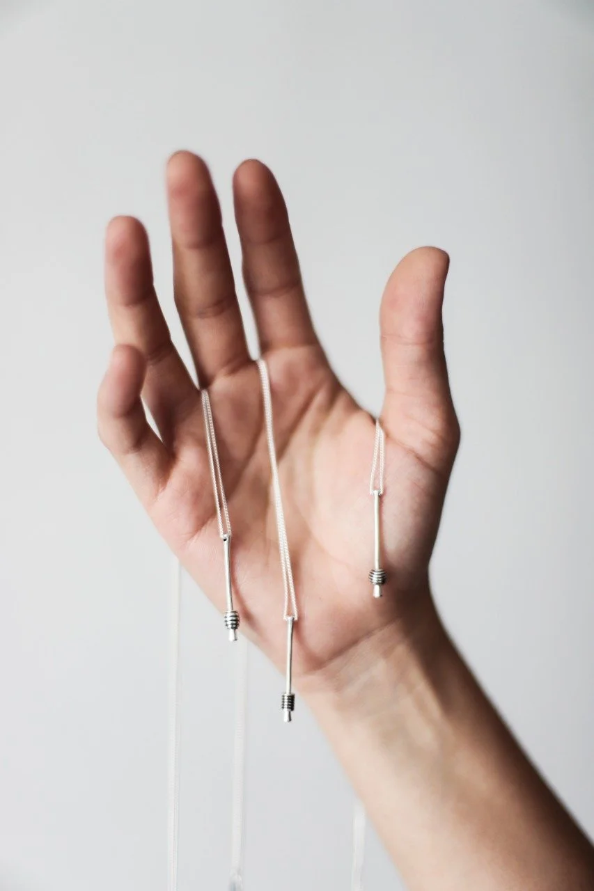 Bolero collection is a series of pendants inspired by traditional Mexican games and the playful spirit they embody. Each piece begins with simple cylindrical forms and evolves into a small object that feels both familiar and contemporary.